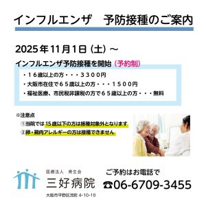 11月1日(土)からインフルエンザの予防接種を開始いたします。